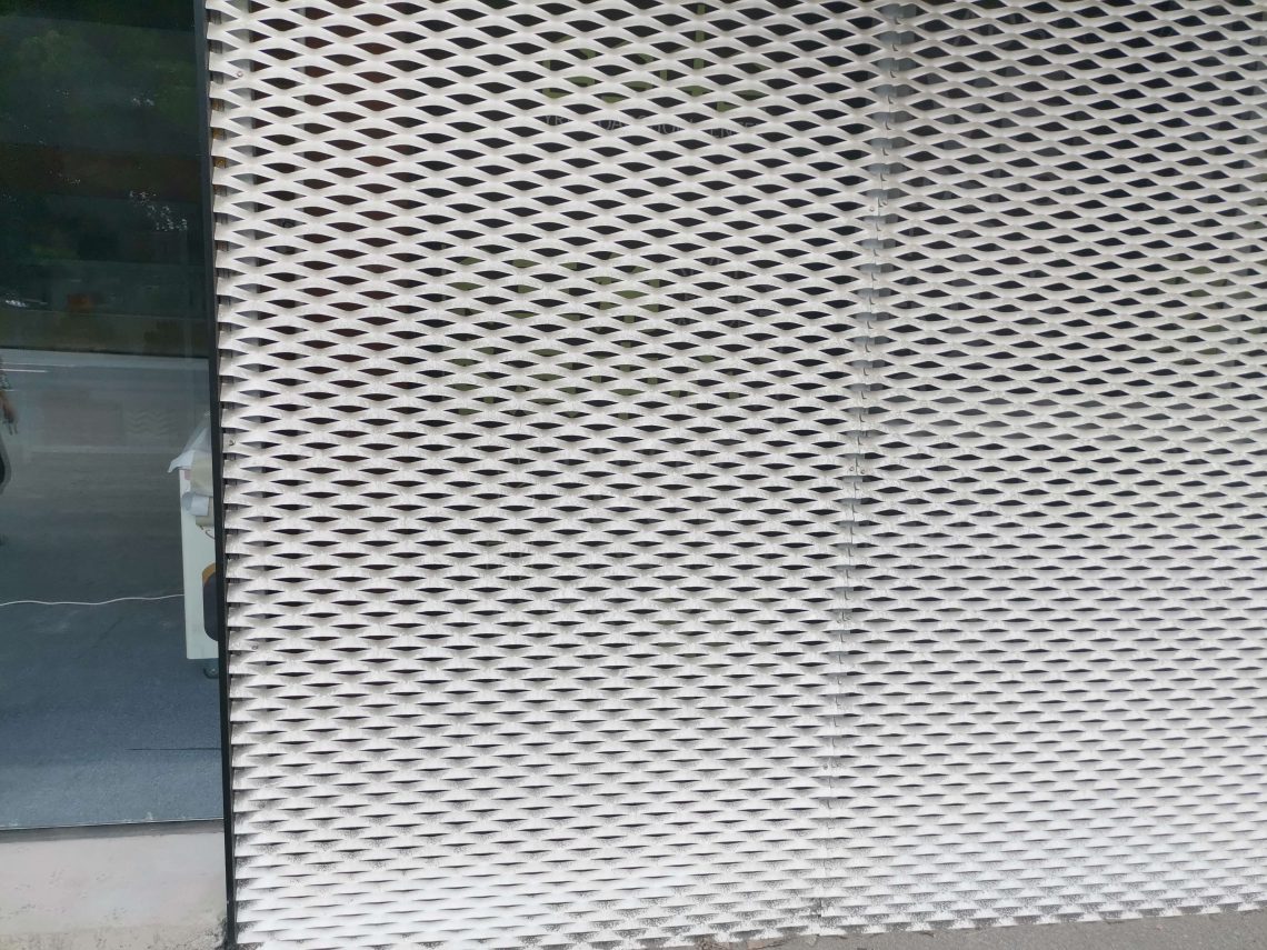 以上安装实例图就是幕墙钢板网最常见的安装方式,从侧面看,依次是墙壁-金属框架-钢板网,测量好墙壁的长宽,在订做一个吻合墙面的金属框架,最后再把金属钢板网用螺丝安装在框架上面,测量计算好金属框的尺寸,也就可以精准计算出刚钢板网的长和宽,这是最简易的安装方式。